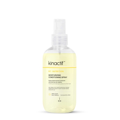 Todos los productos Kinactif de KIN Cosmetics, combinan una fórmula dual para ejercer una doble acción sobre el cuidado del cabello y el cuero cabelludo. En este caso, la fórmula 100% vegana de Kinactif Moisturizing Conditioning Spray contiene:
