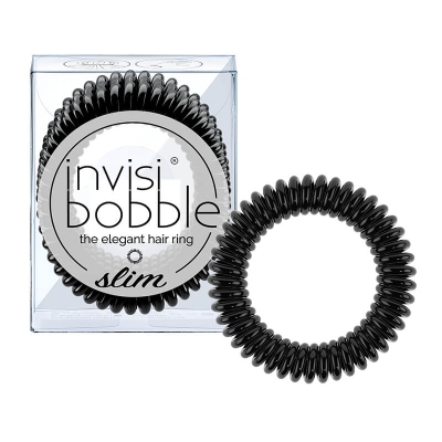 Invisibubble Slim True Black es su versión skinny y color negro. El clásico, básico, elegante y atemporal. Es el accesorio ideal para hacer coletas y moños. Se adapta a la perfección a todo tipo de cabello.