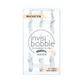 El invisibobble® está compuesto de poliuretano, más conocido como resina artificial. El poliuretano es particularmente higiénico, ya que no absorbe suciedad ni bacterias, y tiene una superficie muy fácil de limpiar. Los clips invisibobble® waver+ de este pack de 3 unidades en versión transparente, son la mejor opción para looks semi-recogidos sin que se note que llevas nada de nada.