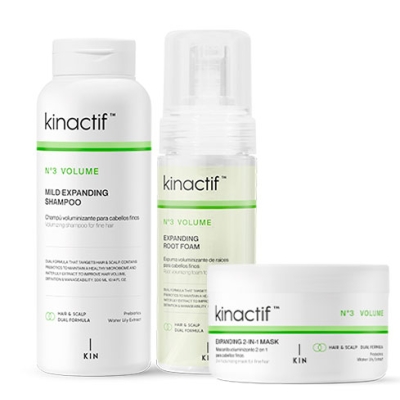 - Kinactif Nº3 Volume Shampoo, que aumenta el volumen y el grosor de la fibra capilar sin aportar peso, ni apelmazar.