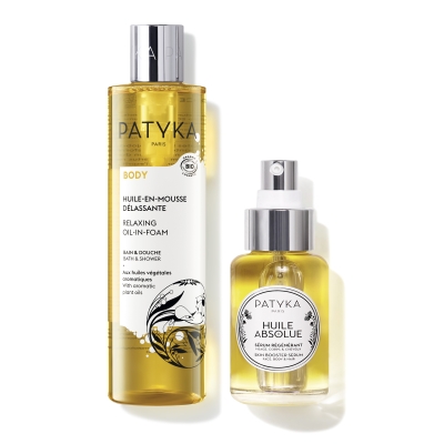 Patyka presenta esta atractiva pieza de colección en Edición Limitada con su histórico Best Seller, el Huile Absolue acompañado (en esta ocasión) por el aceite de ducha extraordinario. Una joya para regalar o auto-regalarse un instante de serenidad.
