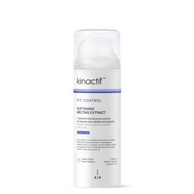 Kinactif Softening Extract de KIN Cosmetics, repara y alisa el cabello, ejerce una acción reductora del volumen y te ayuda a controlar mucho el peinado. Este tratamiento termo-alisador es todo un soplo de aire fresco antes de empezar a secarte el cabello o a pasarte la plancha. Mantiene la fibra capilar alejada de los daños térmicos mediante una capa protectora invisible que, además ayuda al deslizamiento de la plancha. El producto deja un brillo precioso y una increíble textura de seda que no solo se nota al tacto sino que también a la vista.