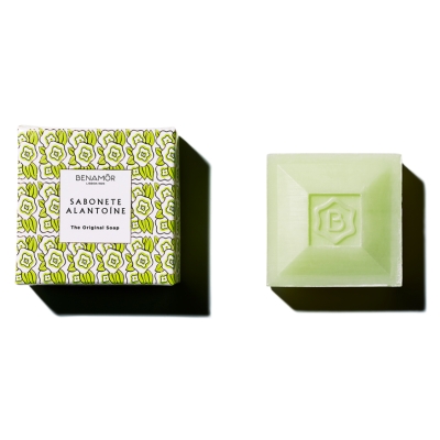 Alantoine The Original Soap. El Sabonete más famoso y deseado de Benamôr. Esta pastilla de jabón para manos y cuerpo es de lo más refrescante y tiene un adictivo aroma cítrico que es todo un clásico de la marca y de los románticos de la cosmética. El Sabonete de Alantoine, da un giro total a la piel protegiéndola como si de una capa invisible se tratase. Deja la piel hidratada, perfectamente limpia y protegida.
