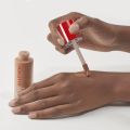 - Duradero, resiste intacto todo el día gracias a la incorporación de microresinas dermoadhesivas que hacen que la fórmula sea más resistente al sudor, al agua y a la fricción para una cobertura total y duradera.