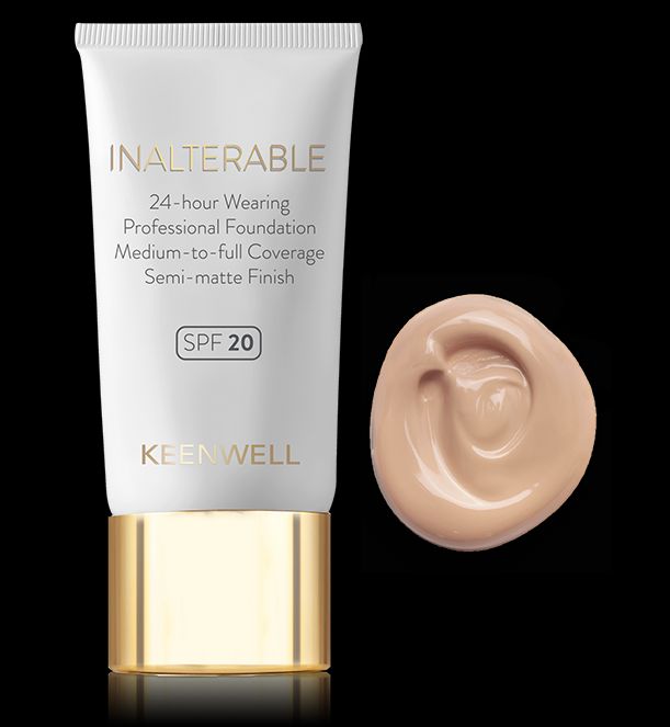 Esta base de maquillaje no comedogénica de la marca profesional Keenwell, se fusiona en el rostro como si fuese una segunda piel. Tiene un acabado aterciopelado semi-mate, sin brillos pero sin restar vitalidad. Se aplica muy fácilmente y de un modo uniforme dejando la piel lisa y perfecta al instante. La base Inalterable de Keenwell actúa además como crema de tratamiento facial porqué es rica en activos antioxidantes, vitamina E, ácido hialurónico y extracto de granada. También lleva filtro UVA/UVB de amplio aspectro Spf20. Su fórmula esta totalmente libre de aceites minerales, ftalatos y otros alérgenos. Además es apta para veganos. También disponible para pieles de tono medio (fototipo III).