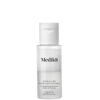 Es eficaz, delicado e instantáneo. Disuelve sin esfuerzo la máscara de pestañas, el eyeliner, las sombras de ojos o las barras de labios con alto pigmento en cuestión de segundos. El sistema de limpieza micelar de este desmaquillante, tonifica y refresca el rostro después del uso del maquillaje durante todo el día. Además es un excelente tratamiento para las pestañas porqué quedan protegidas con glicerina hidratante y reforzadas con ácido hialurónico para evitar la pérdida de volumen. También lleva manzanilla y la famosa vitamina B5 de Medik8 para calmar, nutrir y aportar firmeza a la delicada piel del contorno de los ojos y los labios.