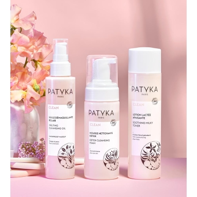 PATYKA reinventa el ritual de limpieza con esta completa colección. Clean es la rutina de limpieza facial realmente eficaz para que la piel luzca nítida y sana. Se trata de unas fórmulas delicadas, respetuosas, con un sutil y adorable aroma 100% natural floral, que en conjunto logran que la limpieza facial sea toda una experiencia de bienestar y desconexión. Unos minutitos para ti.