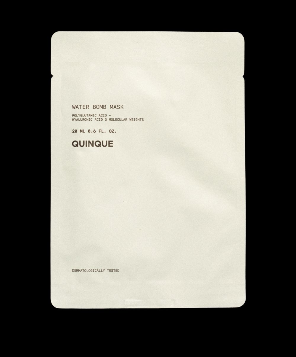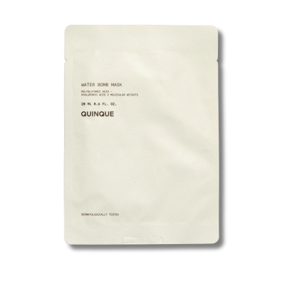 Si te notas la piel apagada, tirante o deshidratada, esta mascarilla de Quinque es tu reset inmediato. Water Bomb Mask de Quinque es esa amiga que llega con litros de hidratación y un chute de calma justo cuando más lo necesitas. Su tejido 100% natural (algodón + fibras de fruta) se adapta perfecto a tu rostro y libera una fórmula que hidrata a varios niveles, calma y devuelve ese glow jugoso que pensabas perdido.