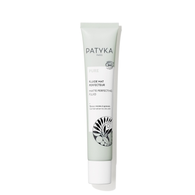 El fluido matificante perfeccionador de Patyka, está diseñado con un complejo de Prebióticos que fortalecen la flora microbiana de la piel y de esta forma, tratan el origen del problema de las imperfecciones. Día tras día, la piel se reequilibra, las impurezas disminuyen y la textura de la piel se afina dejando la piel más lisa y uniforme. También contiene raíz de bardana orgánica que destaca por sus propiedades hidratante y exfoliantes y sílice natural, un polvo que absorbe el exceso de sebo y matifica la piel, proporcionando un acabado liso y suave.