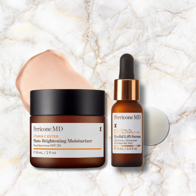 ¡LO QUIERO!Este dúo combina dos tratamientos avanzados: el sérum específico tratar los párpados caídos, el Essential Fx Acyl‑Glutathione Eyelid Lift Serum y la hidratante iluminadora Vitamin C Ester Photo‑Brightening Moisturizer.