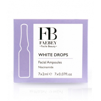 ¿Cómo se usa? Agita suavemente la ampolla de White Drops y coloca el aplicador para romperla con seguridad. Introduce el dosificador y vierte el contenido en la palma de la mano. Aplica el contenido de la ampolla de Faebey sobre rostro, cuello y escote con suaves toques hasta su total absorción. A continuación, aplica tu sérum o crema habitual.