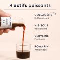 Cada shot contiene 5 g de colágeno marino hidrolizado, un ingrediente de alta concentración y biodisponibilidad que estimula la producción natural de colágeno en el organismo. Gracias a ello, tu piel gana firmeza, elasticidad y luminosidad, mientras que las arrugas se suavizan y la textura se uniformiza.