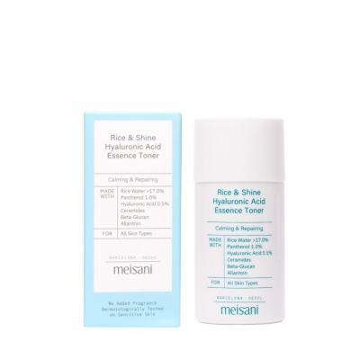 El tónico Rice & Shine Hyaluronic Acid Essence de Meisani es ideal para todo tipo de pieles pero también para pieles sensibles, gracias a su preciado mix de activos entre los que destacamos: