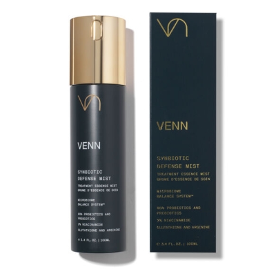 Synbiotic Defense Mist de Venn Skincare, es una bruma cuya formulación contiene un 80% de una combinación única de probióticos y prebióticos para mejorar la función de barrera de la piel, influyendo directamente en el comportamiento de crecimiento de la flora cutánea para que la piel esté protegida, equilibrada y rebosante de salud.