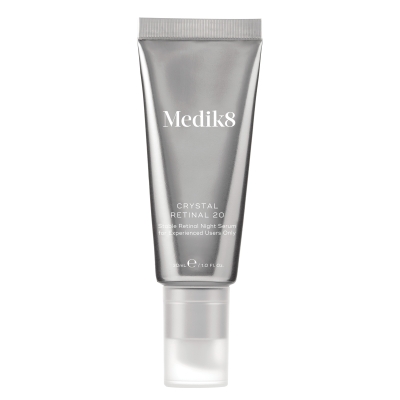 Crystal Retinal 20™, es la última innovación de Medik8 en vitamina A. Este tratamiento está formulado con 0,20% de retinaldeido encapsulado y estabilizado. Se trata de un potente derivado de la vitamina A con resultados evolucionados respecto a otros tratamientos antiedad del mercado: El retinal puede ofrecer resultados comparables a los de la vitamina A de grado clínico hasta 11 veces más rápido que las formas clásicas de retinol. La diferencia de Crystal Retinal frente a otros productos de la misma categoria en el mercado, es que las moléculas de retinaldeido se encuentran encapsuladas en la fórmula ganando en poder de actuación, estabilidad y durabilidad en los resultados.