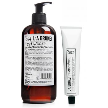 El mix de esencias con salvia, romero y lavanda convierten a este dueto de L:A Bruket (42,80€) en un auténtico ritual de bienestar para el cuerpo. La salvia purifica la piel eliminando las células muertas y los restos de contaminación y/o elementos bacterianos que circulan por el ambiente. El romero estimula la circulación y protege intensamente la piel, mientras que la lavanda la deja bien hidratada y suave.