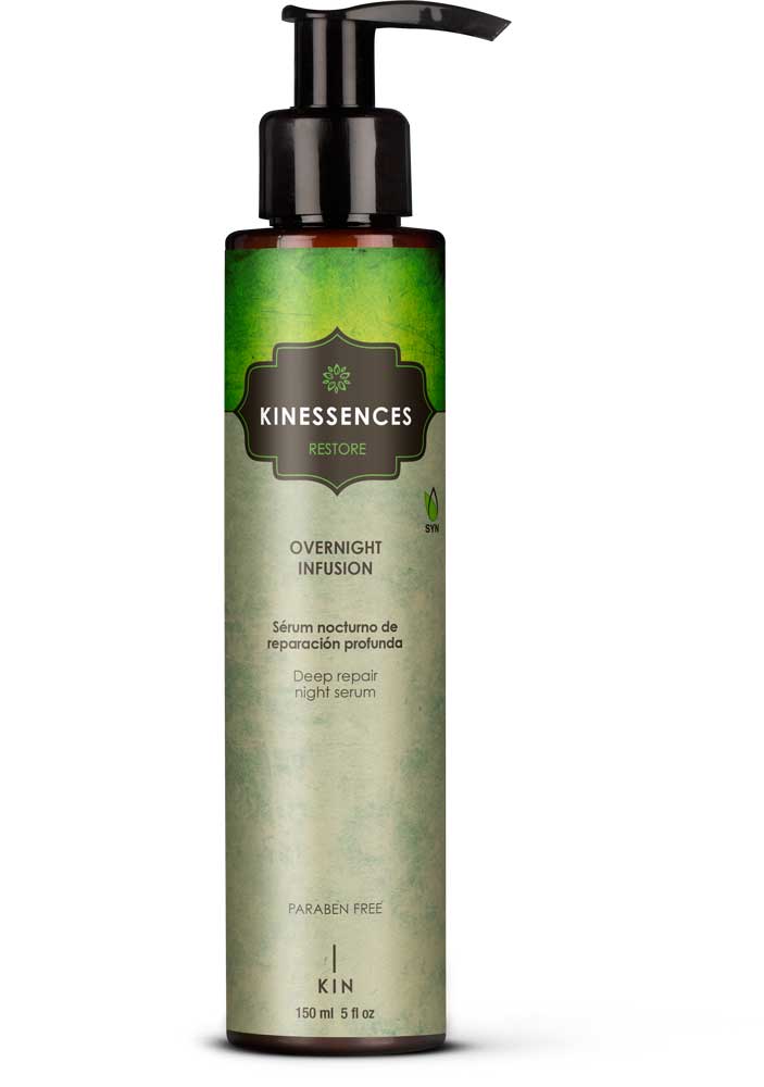El sol, el agua del mar, el cloro de la piscina… hace que tu fibra capilar se deteriore y esté falta de vitalidad. Además se vuelve quebradiza y empieza a descontrolarse como una alma libre. Recupérala eficazmente y en un solo gesto con el sérum nocturno Kinessences Restore Overnight Infusion de KIN Cosmetics para el cabello. 1 vez por semana aplícalo a modo global por todo el pelo con la ayuda de un peine, después déjalo reposar mientras duermes (mínimo 6 horas) y por la mañana lávatelo con el champú Kinessences Restore con el que por sinergia le va a juego y potencia el resultado. Vas a lucir pelazo toda la temporada.