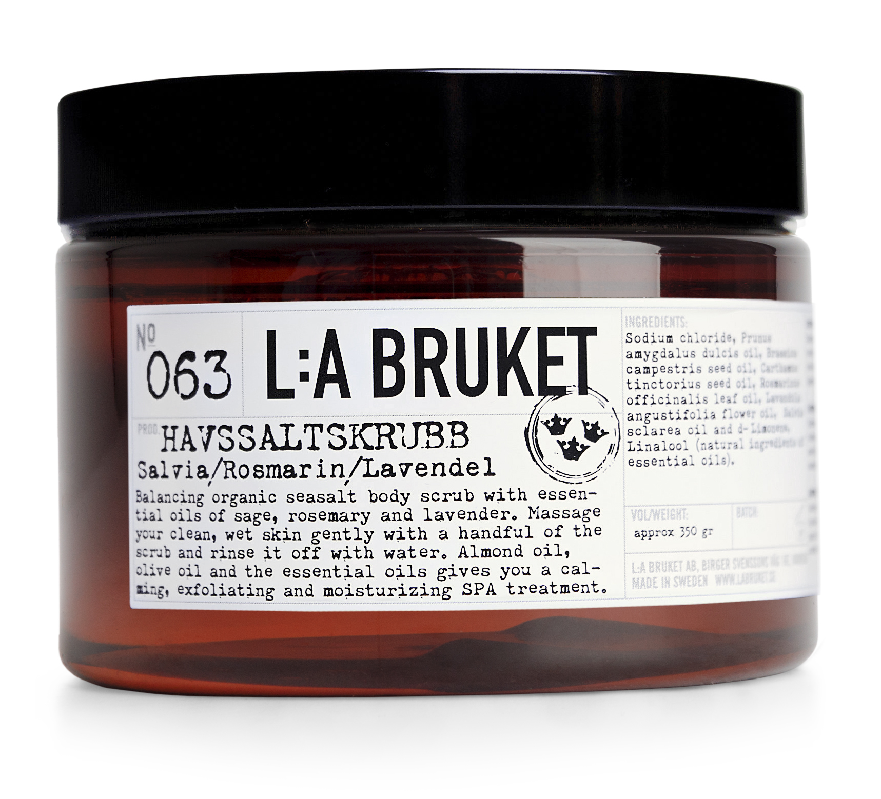 El mix entre sales nórdicas y aceites esenciales de salvia, romero y lavanda convierten a este exfoliante en un auténtico tratamiento de spa sueco en casa. La salvia purifica la piel eliminando las células muertas y los restos de contaminación ambiental. El romero estimula la circulación y protege intensamente la piel mientras que la lavanda la deja hidratada y suave. Este exfoliante de spa además alivia los músculos tensos dejando una sensación de bienestar muy relajante.