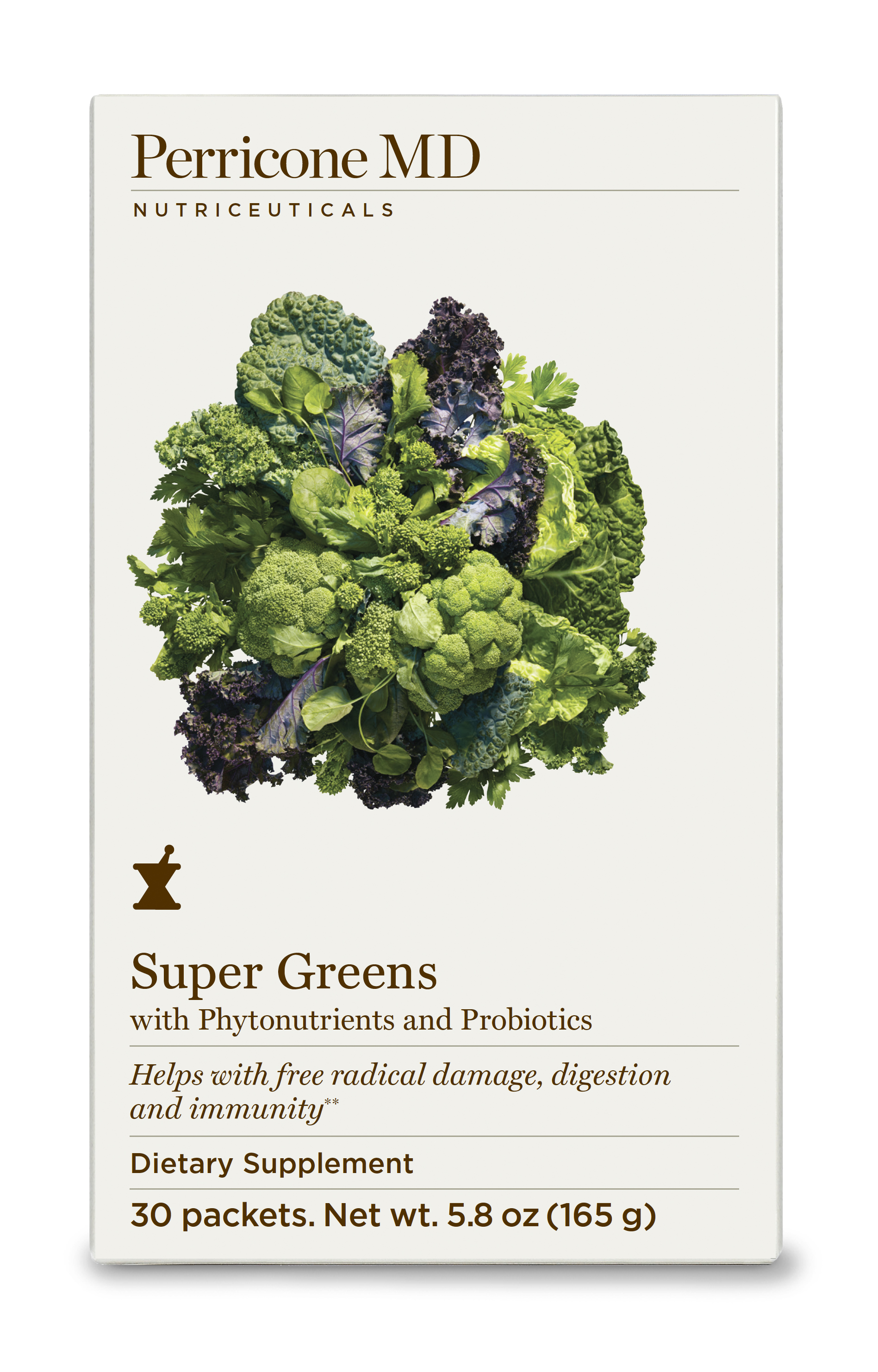 Este zumo verde concentrado en polvo de Dr. Perricone contiene tanta vitamina C como 5 mandarinas, tanta vitamina A como 2 tazas de lechuga, tanta vitamina B6 como 4 plátanos, probióticos y fitonutrientes para el buen funcionamiento del organismo, biotina y NRF2 Antioxidant Support Complex ™, una ciencia patentada por Perricone MD que protege de la oxidación causada por los daños externos y tiene un efecto détox en el organismo.