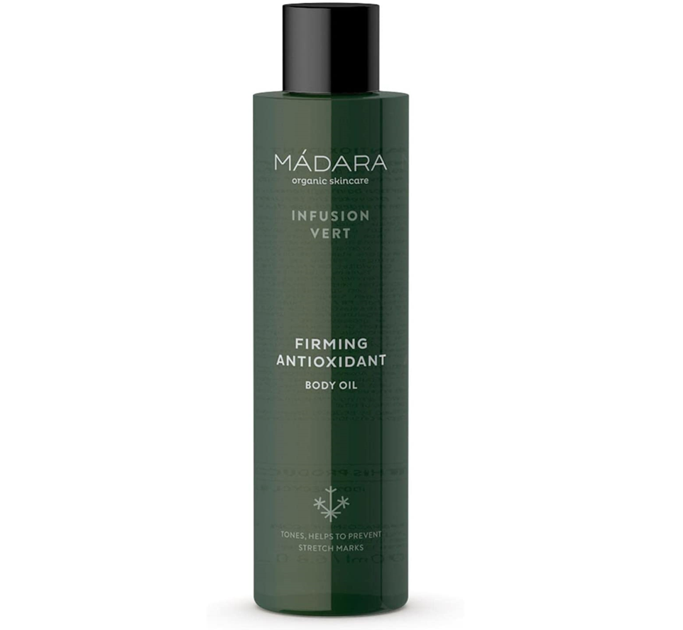 Si lo que buscas es un producto todoterreno que cuide tu piel en profundidad, Firming Antioxidant Body Oil de Mádara (26,90€ en mumona.com), es un producto multifunción, altamente reafirmante, que trata las estrías en profundidad y ayuda a combatir la flacidez.