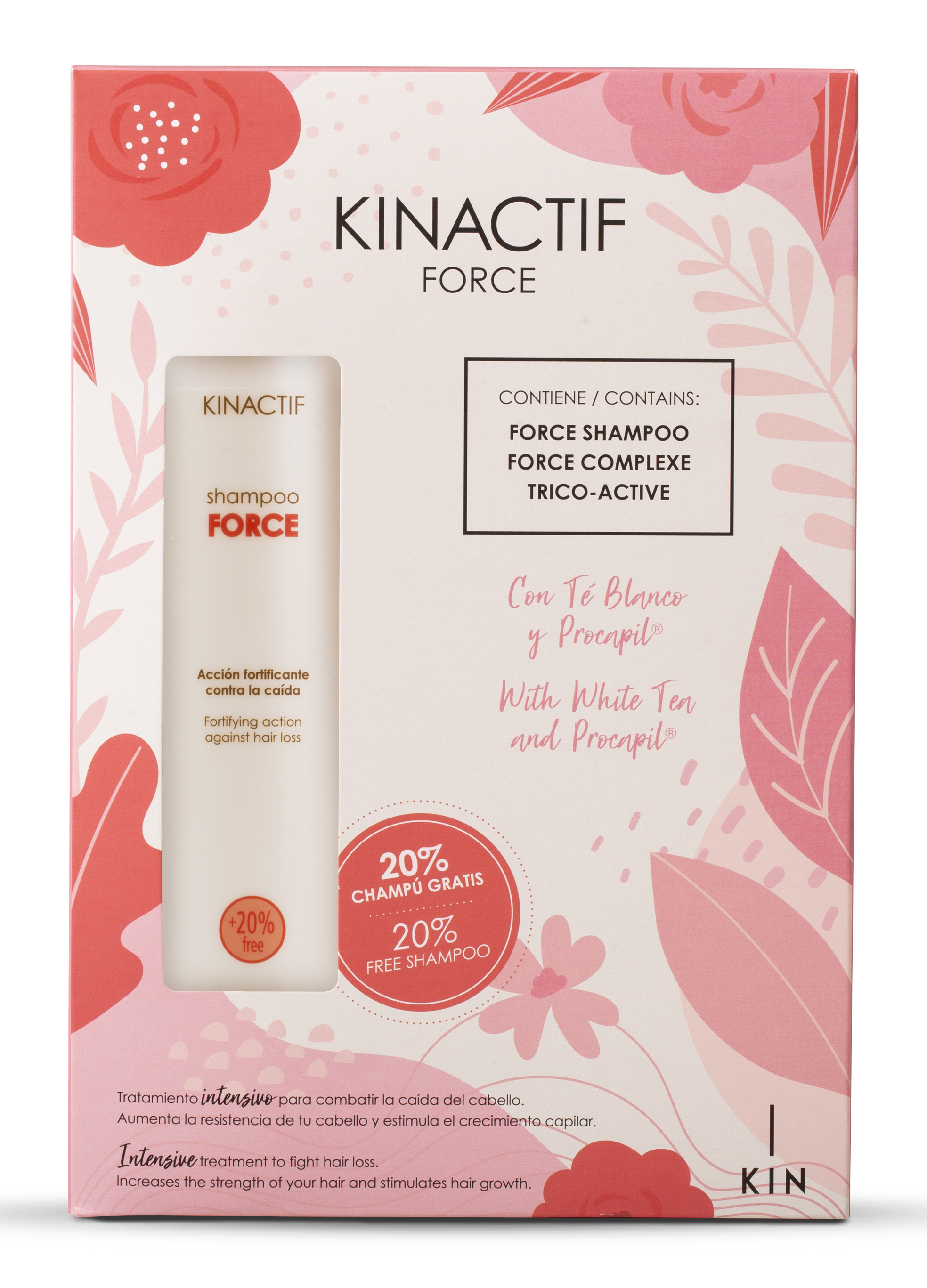 El tratamiento anticaída Kinactif Force de KIN Cosmetics (Pack Oferta 51,84€ en mumona.com) será nuestro aliado para frenar la caída persistente del cabello al igual que favorecerá el crecimiento de nuevos capilares.