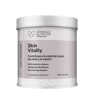 El nutricosmético Skin Vitality de Advanced Nutrition es un complejo multivitamínico que proporciona un total de 28 nutrientes en 1 práctica cápsula al día. Este suplemento, está diseñado para dar apoyo a los estilos de vida estresados y exigentes, con una sinergia integral de nutrientes para satisfacer la multitud de demandas nutricionales modernas.